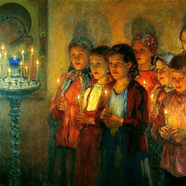During the early part of the service the church may seem to be in a hubbub, with people walking up to the front of the church, praying in front of the iconostasis (the standing icons in front of the altar), kissing things and lighting candles, even though the service is already going on. In fact, when you came in the service was already going on, although the sign outside clearly said “Divine Liturgy, 9:30.” You felt embarrassed to apparently be late, but these people are even later, and they’re walking all around inside the church. What’s going on here?
